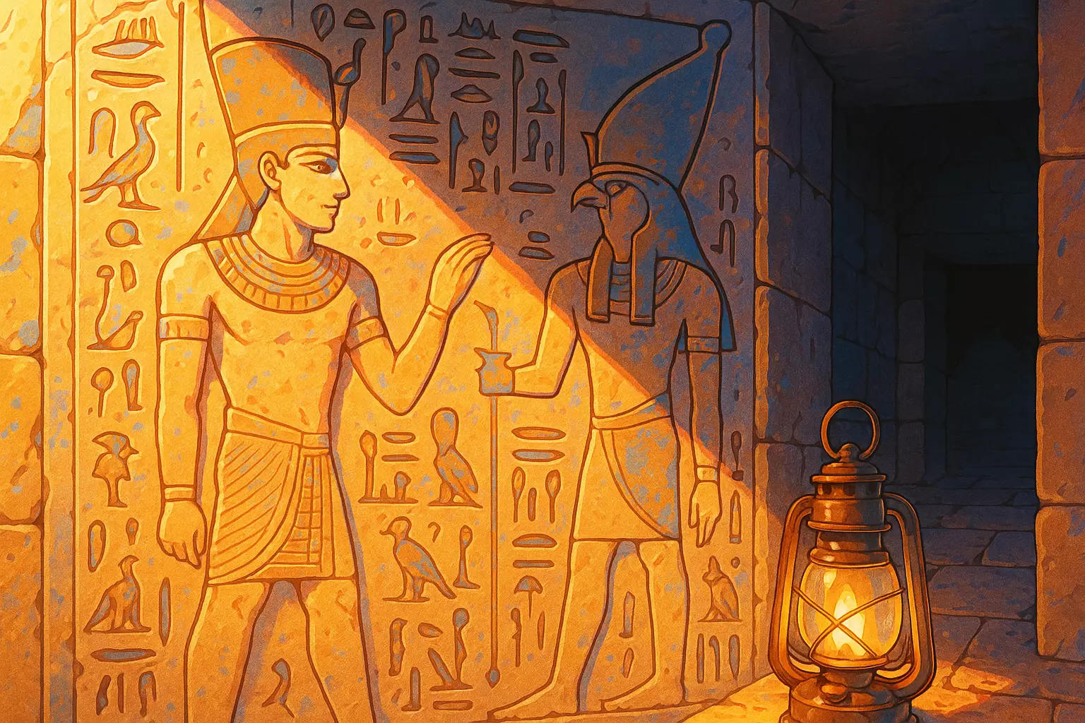 「你選擇仔細觀察入口處的象形文字。作為一位古埃及語學者,你很快辨識出關於「守護者」和「考驗」的警示。其中一段文字提到「太陽之眼將指引道路」。」