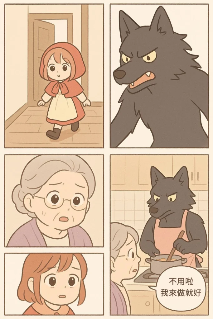 故事一樣從奶奶家開始,但這次,大野狼戴上了圍裙。