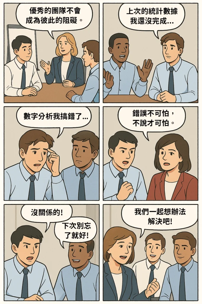 一個優秀的團隊不是永遠沒有錯誤,而是能彼此信任、坦誠以對。